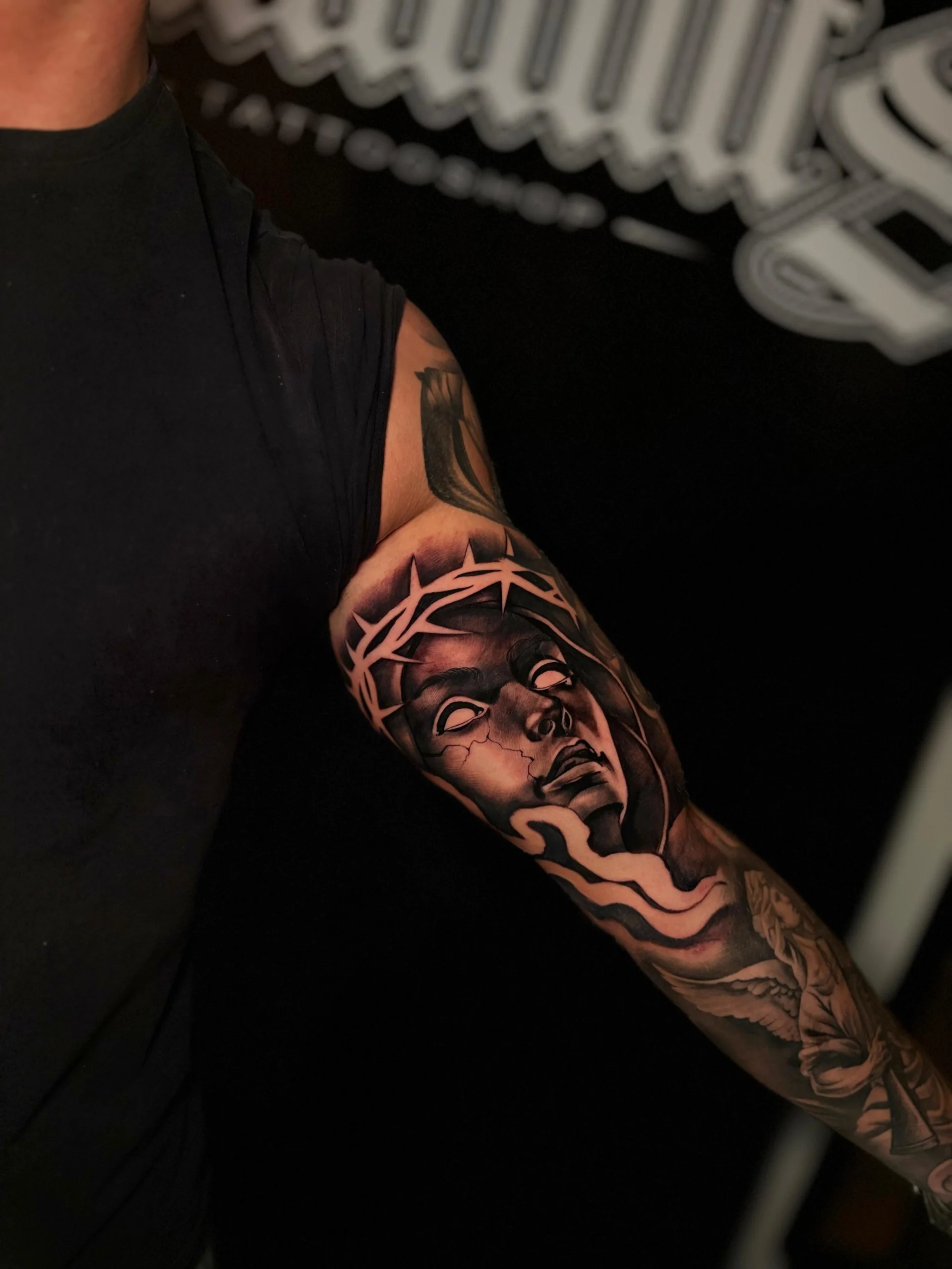 Blxck is een tattoo-artiest met een voorkeur voor sleeves en Chicano-werk.